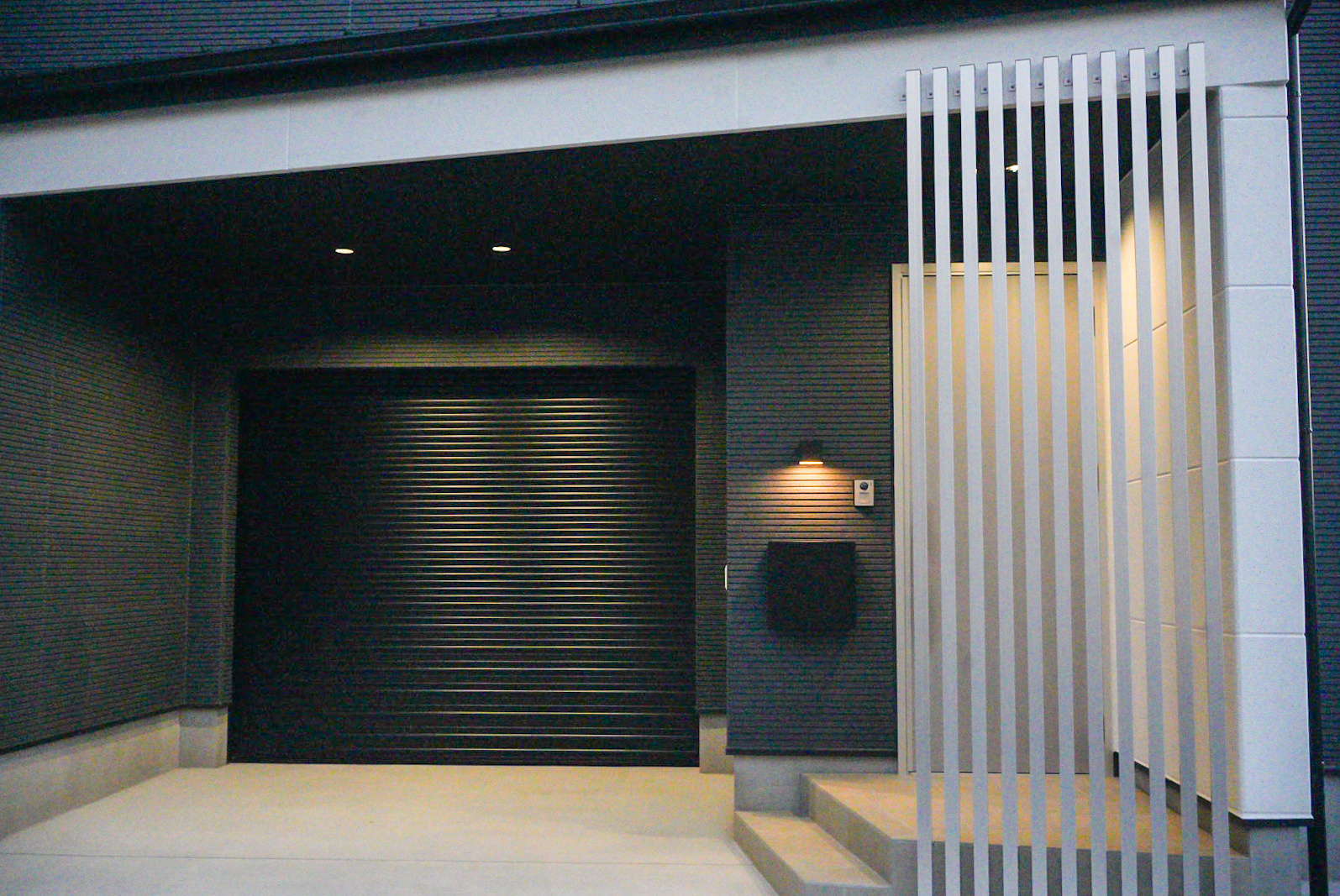 さらに自動シャッターを採用することで、 毎日の使いやすさも高めました。 ただ車を停めるだけではなく、 趣味の道具を整え、気持ちよく使える場所として計画されています。
